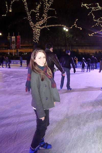 Today, I do believe, was a fine day. The internship part wasn’t so great, because I’ve run out of plays to cover (Christmas season is bad for theatre). When I got home, I took my coupons to Subway and got a 6′ sub for free! Then I went ice skating with Ciara and Priam at the National History museum, and it was FANTASTIC. I’d forgotten how much I love skating, even though I’m still amateur. Most pictures are of us, because really, how many interesting angles are there of a rink?