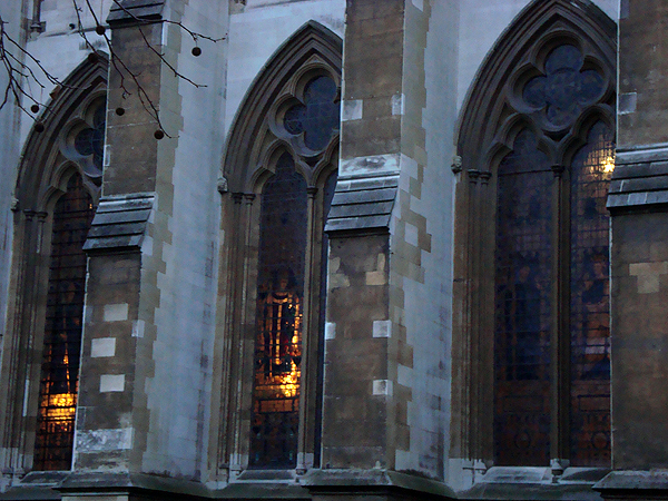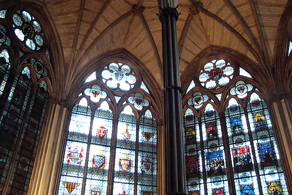 A glimpse of the stained glass windows along the northern stretch of the nave.