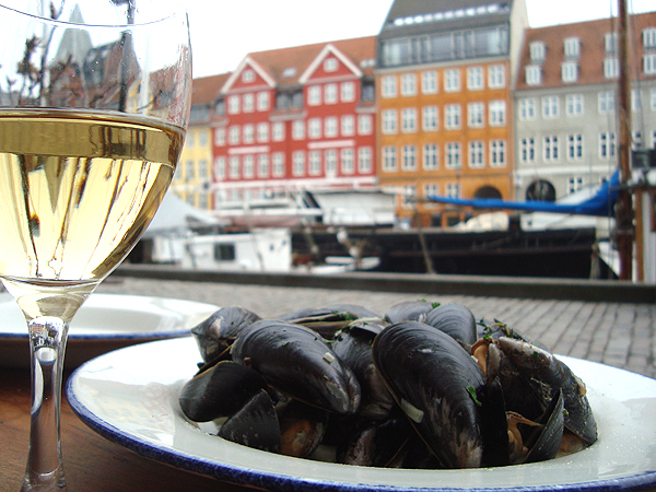 Tonight was my last in Copenhagen, so I spent it spoiling my tastebuds in Nyhavn (Nyhavn 37; nyhavn37.dk) with a DELICIOUS bowl of blue mussels steamed in wine, shallots, garlic, and thyme, served with bread and paired with a glass of white wine.