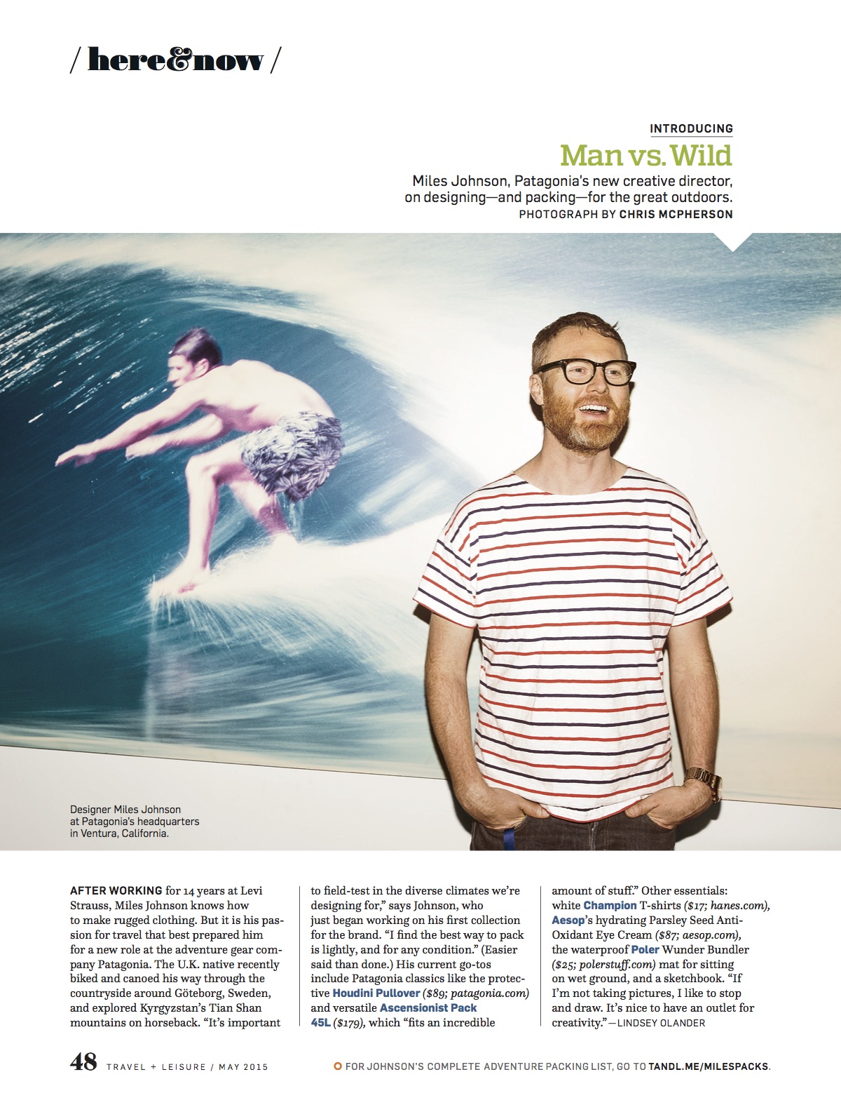 Patagonia’s New Creative Director on Designing (and Packing) for the Wild | Travel + Leisure (first appeared in print)